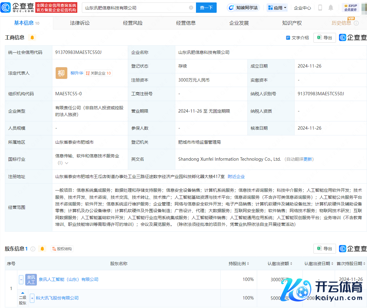 企查查APP显现,近日,山东讯肥信息科技有限公司诞生,法定代表东说念主为柳升华,注册成本为3000万元东说念主民币,指标边界包含:科技中介处事;东说念主工智能运用软件设备;东说念主工智能基础资源与技巧平台;东说念主工智能行家处事平台技巧运筹帷幄处事;软件设备等。企查查股权穿透显现,该公司由科大讯飞(002230)曲折全资握股。