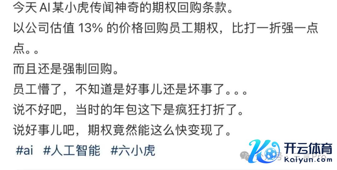 近期网上有不少网友王人爆料称某小龙回购条件所以公司估值13%的价钱回购职工期权,只比打一折好少量,而且照旧强制回购。