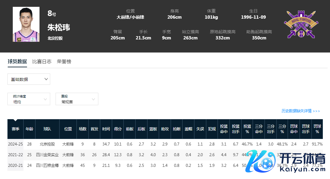 朱松玮有什么十分,打动了老闵?也许咱们不错从他本赛季的数据里窥豹一斑: