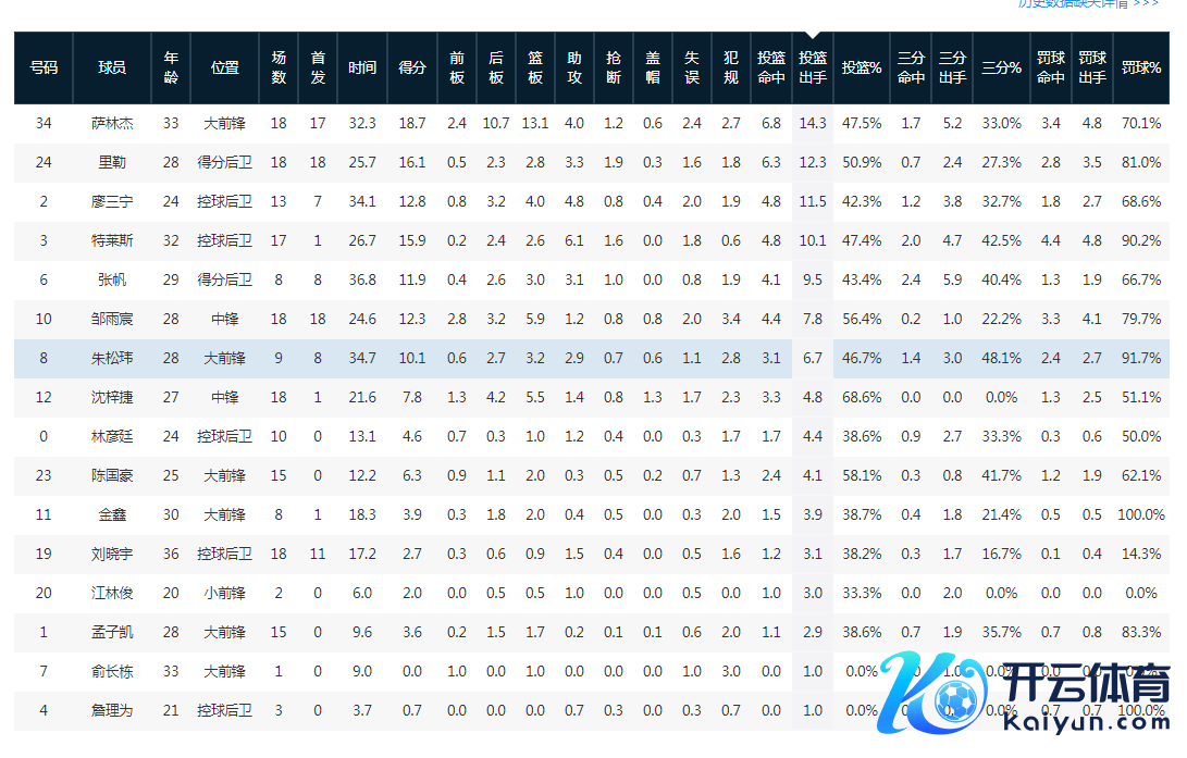 更值得肃肃的是:他投篮射中率46.7%,三分球射中率高达48.1%,罚球射中率91.7%,“180俱乐部”成员(一般指球员投篮射中率卓绝百分之50、三分卓绝百分之40、罚球卓绝百分之90,即50-40-90,策画180;而朱松玮天然投篮射中率未卓绝百分之50,但三项策画却卓绝180)!