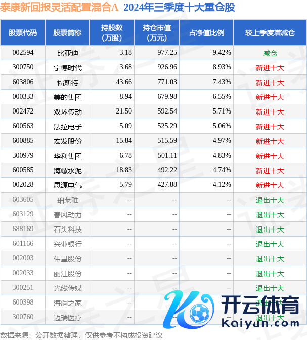 泰康新答复天真建树羼杂A为羼杂型-天真基金,笔据最新一期基金季报清楚,该基金钞票建树:股票占净值比85.84%,债券占净值比5.36%,现款占净值比12.68%。基金十大重仓股如下: